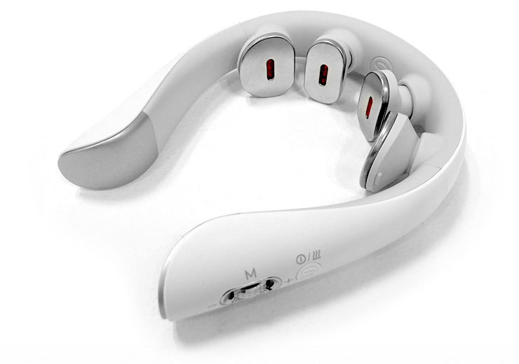 電極の中心部に640nmの近赤外線を発するLEDを3個ずつ、合計12個搭載。近赤外線は筋肉の10mmの深さまで浸透、深部の血流を改善し、首まわりの筋肉の緊張をやわらげます。