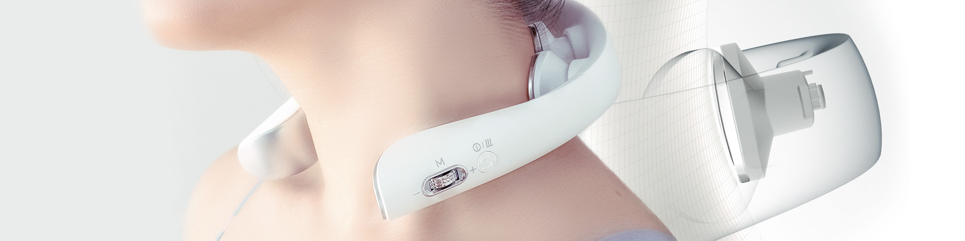 大型のEMS電極を4個そなえ、パワフルな刺激を実現しました。軽いフィーリングから、ギューっとしぼられるような強い感触まで、自在にEMS強度の調整が可能です。パワフルな刺激で首・肩まわりの筋肉をしっかりと「鍛える」ことを実現しました。